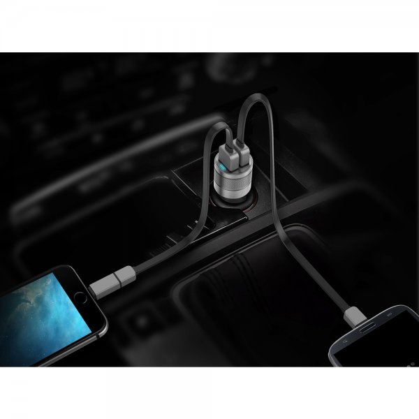 Moderní duální 4,8A nabíječka do auta s inteligentní identifikací výstupu na každém portu USB. Nabíječka je vhodná pro smartphony a tablety, a dokáže nabíjet dvě zařízení současně. Z důvodu maximální bezpečnosti má tato rychlá nabíječka teplotní ochranu, ochranu proti zkratu, ochranu proti vstupnímu přepětí a ochranu výstupu před nadproudem.