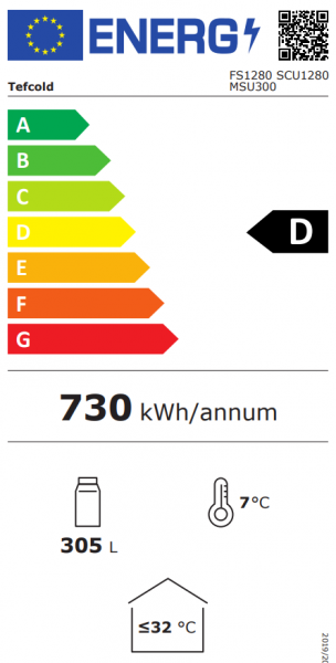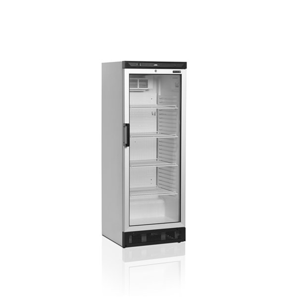 Jednodveřová chladicí skříň s proskenými dveřmi.