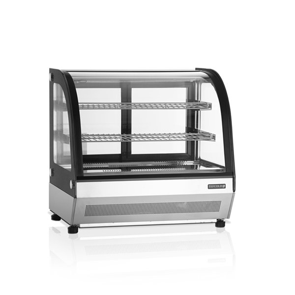 Pultová chladicí vitrína vhodná pro prezentaci zákusků, dortů, sendvičů či baget o objemu 100 l. Umístění výrobků lze regulovat nastavitelnými policemi. Oblé přední sklo, prosklené boky a LED osvětlení zajišťují ideální viditelnost prodávaného zboží.