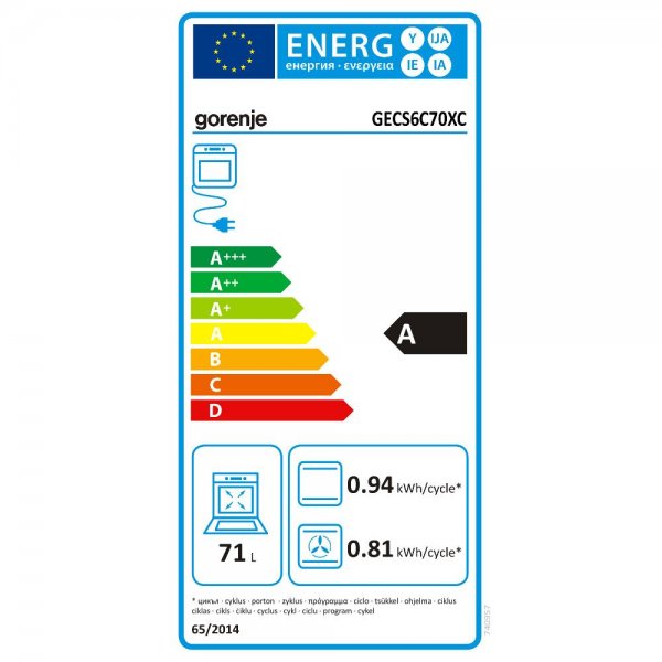 Využitelný objem pečícího prostoru (2010/30/ES) 71 l