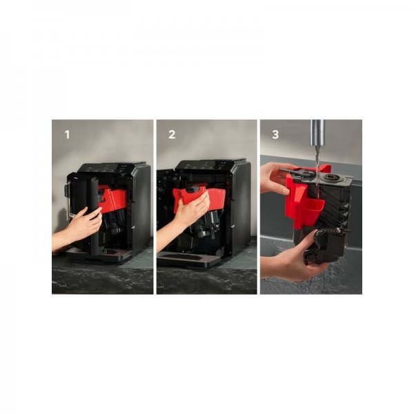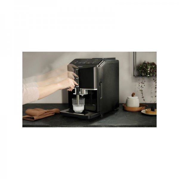Snadno přístupná servisní dvířka na přední straně přístroje zajišťují jednoduchou údržbu a rychlé čištění vyjímatelné spařovací jednotky. Tu stačí opláchnout pod tekoucí vodou a potom vrátit, abyste udržovali stále vynikající chuť kávy a prodloužili životnost přístroje. Napěňovací mléčný systém můžete pohodlně nechat umýt v myčce. Černý plně automatický kávovar Espresso SIEMENS TF301E09 si velmi rychle oblíbíte. Stane se neodolatelným domácím spotřebičem pro vás i vaše hosty.