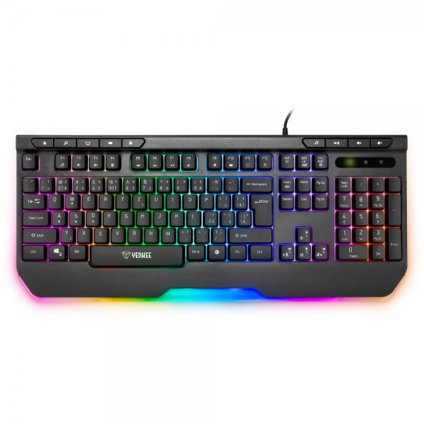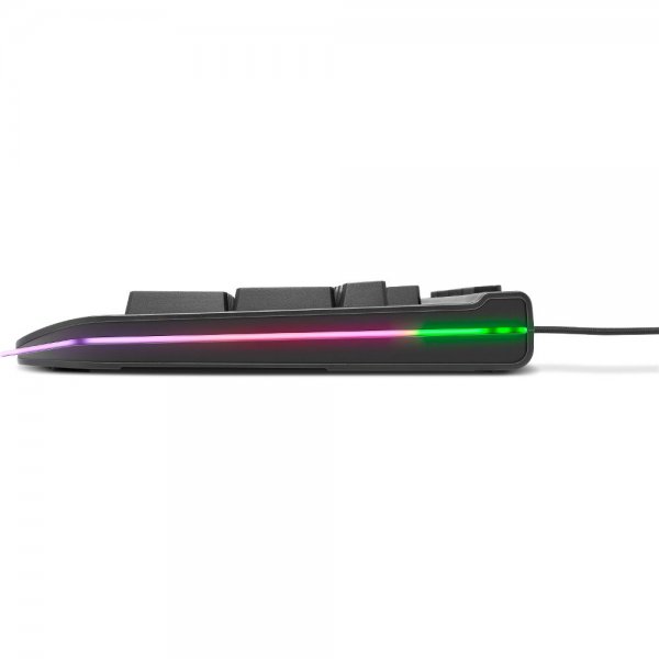 Robustní membránová herní klávesnice s plným RGB podsvícením a multimediálními klávesami. Po obvodu exteriéru klávesnice je vedena přizpůsobitelná RGB lišta, díky které se z BRUTUS stává unikátní klávesnice. Pro ničím nerušené hraní je v klávesnici zabudován herní mód, který uzamkne klávesu Windows. Tělo klávesnice je vyrobeno z vysoce kvalitního ABS. To s sebou přináší nadstandardní odolnost, výdrž a díky své hmotnosti taktéž pevnou stabilitu. Ergonomická opěrka výrazně snižuje únavu zápěstí při dlouhém hraní anebo práci bez přestávek. Díky přítomnosti multimediálních tlačítek lze jednoduše jedním stiskem operovat s nejpoužívanějšími funkcemi počítače. 26 Anti-ghost kláves lze stisknout současně bez jakéhokoli konfliktu.