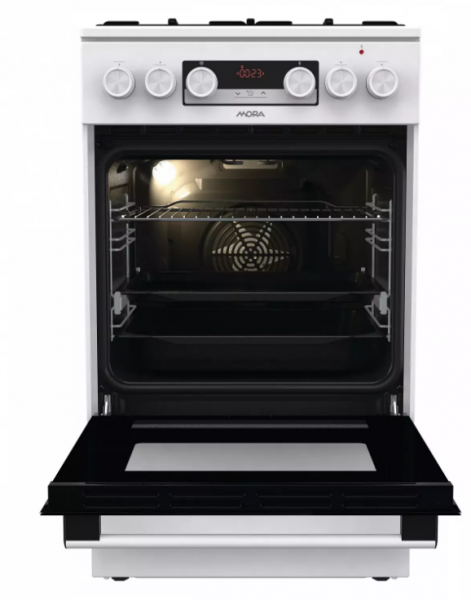 Tento kombinovaný sporák Mora K 5658 BW v bílém provedení vám kromě tradičního pečení otevře dveře k dalším moderním tepelným úpravám pokrmu. Připravíte s ní jídla rychle a šetrně, takže si zachovají maximum vitamínů a stopových prvků. Díky digitálnímu časovému spínači s hodinami se Vám již nikdy nespálí oběd, tato praktická funkce Vám přinese mnoho užitku. Lze nastavit odložený start a ukončení pečení, pouze ukončení pečení a minutka, samozřejmostí je nastavený aktuální čas. Výkonná multifunkční trouba s objemem 70 l v energetické třídě A má celkem osm různých programů, včetně horního a dolního topného tělesa , spodního tělesa s ventilátorem, horkovzdušné pečení či zvláště šetrné rozmrazování, které Vám ušetří opravdu velké množství času. Sporák disponuje také oblíbeným Pizza programem, díky kterému vykouzlíte báječnou pizzu jako z pravé italské restaurace. Hotovky většinou volíme tehdy, když nás tlačí čas. Se speciálním programem pro hotová a mražená jídla ho ušetříte ještě víc, protože si připravíte chutný oběd rychleji, bez nutnosti předehřívání trouby. Výsledek však bude dokonalý, a tak si v klidu vychutnáte třeba kuřecí nugety, lasagne, hranolky nebo croissanty. Nové bezpečné závěsy dvířek zaručují bez Vaší asistence velmi tiché a šetrné zavírání dvířek trouby. Uvnitř se nachází praktické osvětlení, takže budete mít po celou dobu pečení dokonalý přehled. Pro zvýšení komfortu obsluhy je trouba vybavená teleskopickým výsuvem, které umožní bezpečnou manipulaci s připravovaným jídlem, aniž byste ho museli z trouby vytáhnout. Ve spodní části sporáku je praktický úložný prostor, do kterého snadno uložíte příslušenství v podobě roštu. Mělkého plechu a MAXI pekáče XXL o objemu až 8 l. Perfektní vyčištění vnitřního prostoru po každém pečení zajistí funkce ECO CLEAN, díky které odstraníte i větší nečistoty bez nutnosti použít čisticí prostředek