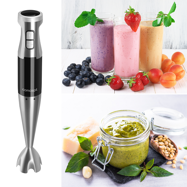 Tyčový mixér patří mezi oblíbené kuchyňské pomocníky. Je lehký, skladný a dobře se s ním pracuje. Díky příkonu 1000 W s ním snadno a rychle připravíte lahodné mléčné koktejly, jemné omáčky, pomazánky, domácí přesnídávky nebo rozdrtíte led do letních nápojů. Tyčový nástavec je vyroben z kvalitní nerezové oceli, takže s ním můžete mixovat i horké polévky a omáčky přímo v hrnci. Součástí balení je praktická mixovací nádoba o objemu 800 ml, kterou můžete po ukončení práce vložit do myčky nádobí.