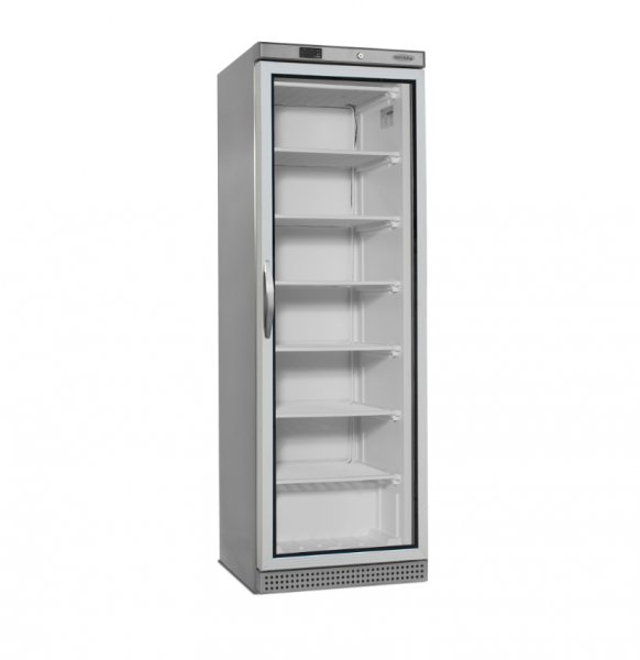 Mrazicí skříň s prosklenými dveřmi a nerezovým opláštěním