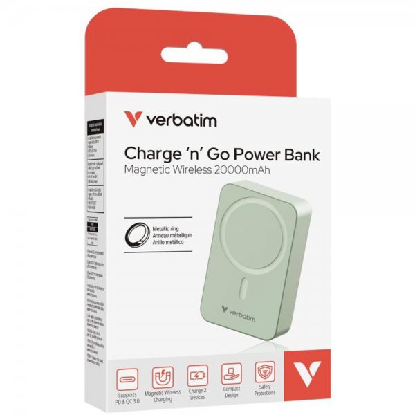 Verbatim magnetická bezdrátová powerbanka Charge 'n' Go Essentials, 20000mAh