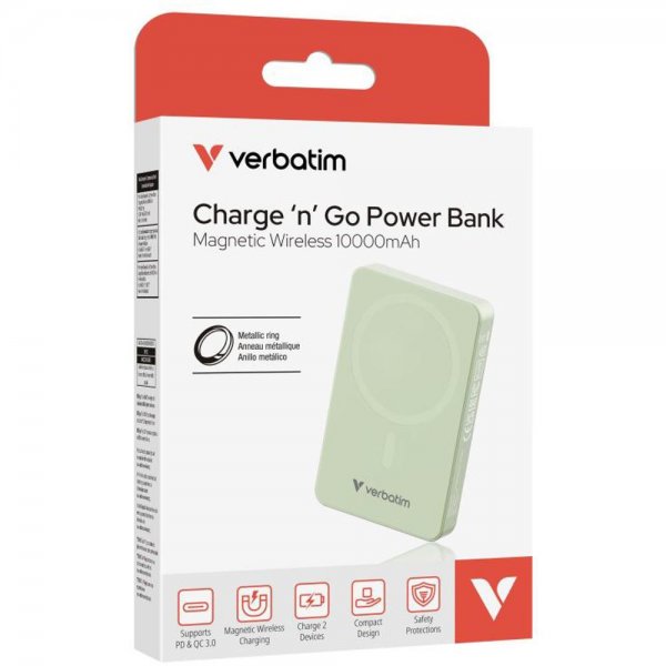 Verbatim magnetická bezdrátová powerbanka Charge 'n' Go Essentials - Výkonná magnetická powerbanka s rychlým nabíjením