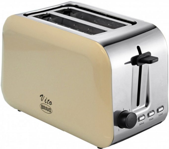 Nerezový topinkovač Bravo B-4819 pro přípravu 2 kusů topinek. Je vybaven funkcí ohřevu, rozmrazování a STOP tlačítka.
