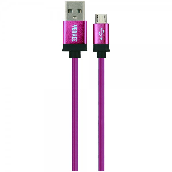 Synchronizační a nabíjecí USB kabel s konektory USB na mikro USB a barevným kovovým konektorem.