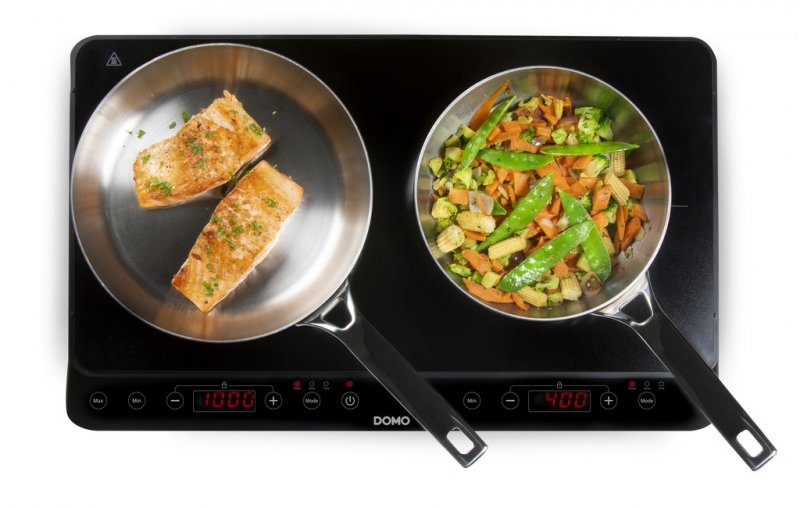 Indukční vařič se dvěma plotýnkami integrovanými do pevné sklokeramické desky. Indukční plotýnky samy rozpoznají vhodné nádobí a v případě použití jiného nádobí se umí samy vypnout. Stejně tak se umí plotýnky samy vypnout a dochladit po sundání nádobí, nebo po uplynutí nastaveného času vaření. Sklopený ovládací panel umožňuje snadné ovládání i v případě většího hrnce umístěného na plotýnce. Ovládání vám také usnadní speciální tlačítka pro přímou volbu maximálního, resp. minimálního výkonu plotýnky.