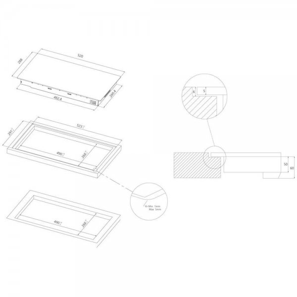 Rozměry výrobku V × Š × H (mm) 55 × 288 × 520