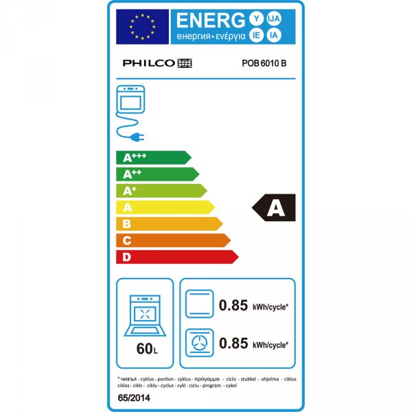 Spotřeba energie na cyklus pro pečící prostor (v režimu s přirozenou konvenkcí) 0,85 kWh/cyklus