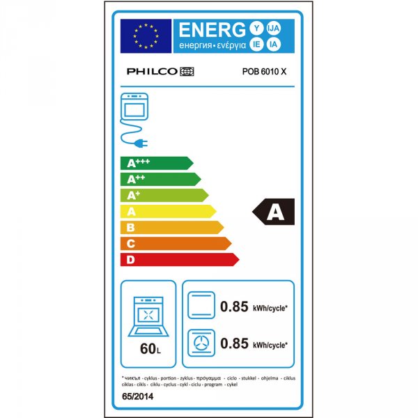 Spotřeba energie na cyklus pro pečící prostor (v režimu s přirozenou konvenkcí) 0,85 kWh/cyklus