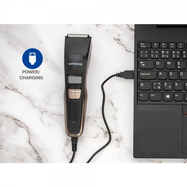 Zastřihovač je vybaven USB portem, takže baterii můžete dobít přes PC, tablet, notebook i powerbanku, ale i standardně ze sítě. Díky indikátoru baterie vždy přesně víte, zda už nadešel čas dobití. V provozu bez síťového napájení vydrží úctyhodných 100 minut, což vám umožní vyšperkovat účes do posledního detailu. Zastřihovač vlasů Orava VS-515 bude vaším věrným společníkem vždy a všude.