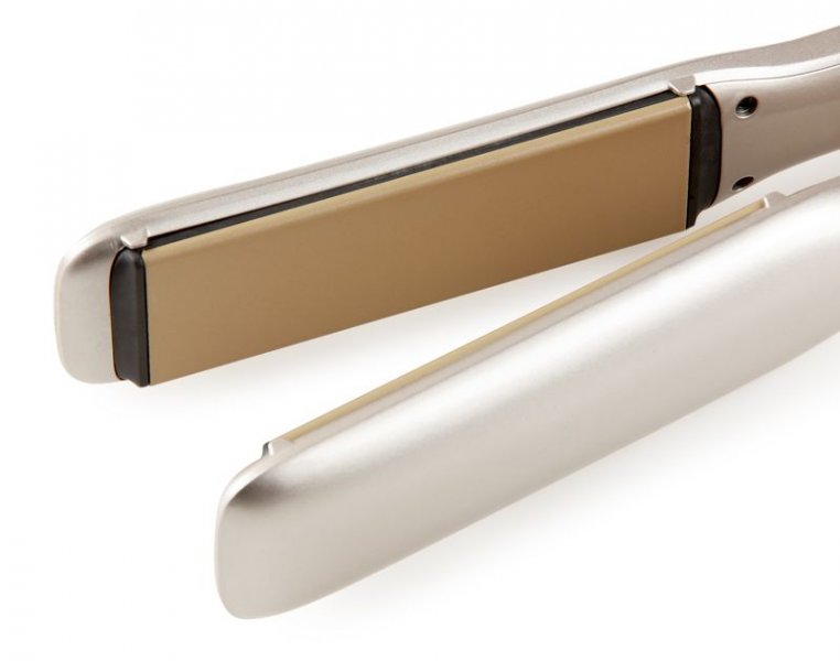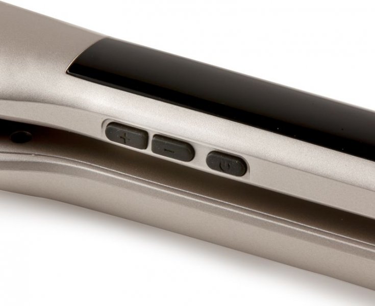 Keramická žehlička na vlasy vybavená praktickým kloubem napájecího kabelu umožňuje otáčet žehličkou o 360° bez kroucení kabelu. Technologie destiček s integrovaným topným tělesem pak zajišťuje velmi rychlé nahřátí za několik desítek sekund i na nejvyšší teplotu. Plovoucí odpružené destičky na sebe přesně a rovnoměrně doléhají po celé své délce a také jistě potěší jejich zvětšená šířka 38 mm, nebo speciální turmalínový povrch, který funguje jako antistatický prvek, či ionizátor. Nastavenou teplotu a stav nahřátí lze mít plně pod kontrolou na digitálním LED displeji.